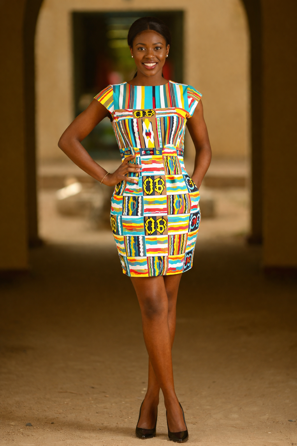 Sublimez votre silhouette avec cette robe en coton Wax haut de gamme. Motifs géométriques exclusifs aux couleurs nationales. Coupe moderne avec fermeture éclair invisible au dos. Idéale pour vos sorties citadines ou événements semi-formels.